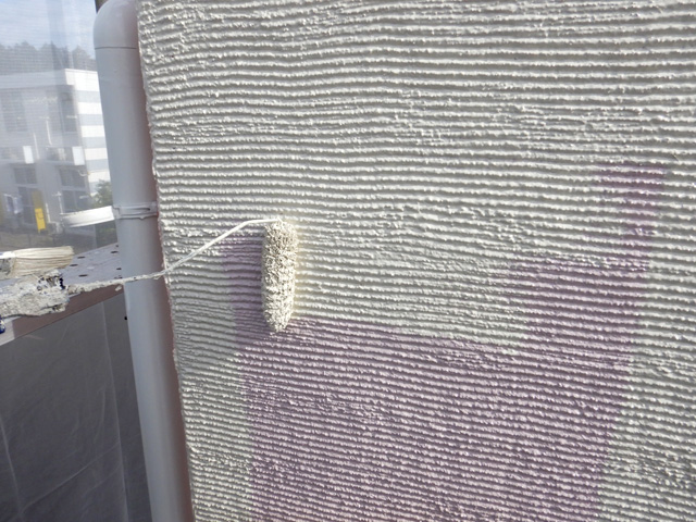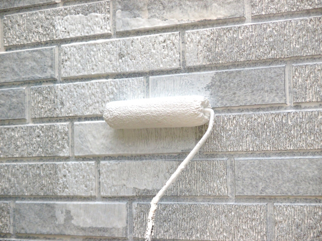 こちらへ、シーラーで下塗りをし目地の色となる色で塗装し、その後、タイルの柄となる色で転がしアクセントを入れる施工もやっております!