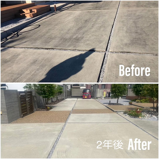 定期的に車の出入りがあるので、それに伴いどうしても汚れが目立ちやすい場所です。