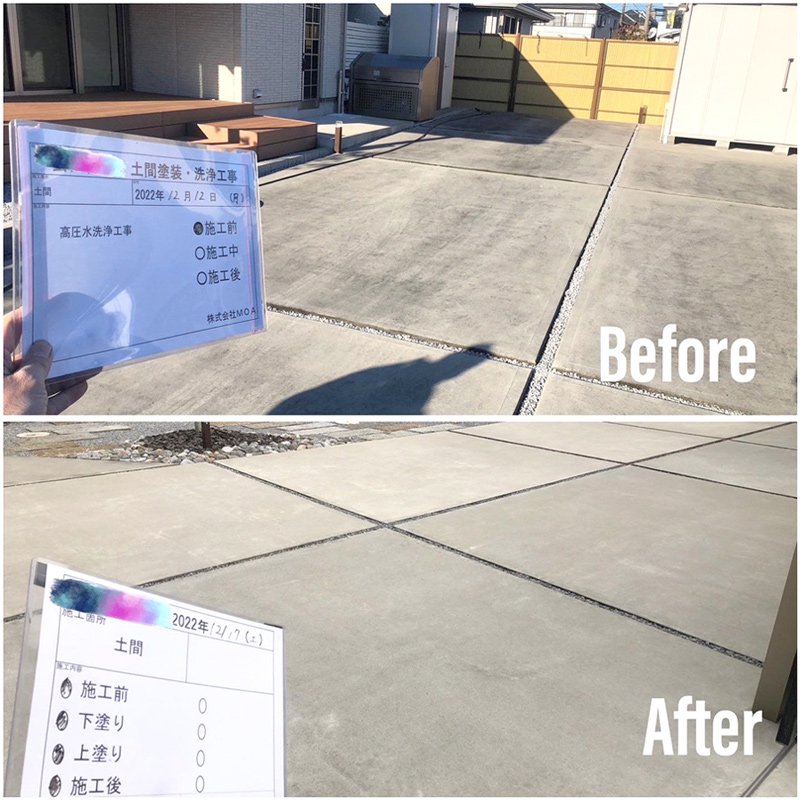 ご要望としては、土間の部分の汚れを取り除き、さらに今後の掃除を簡単にしたいとのご依頼でした。